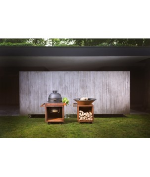 Amplíe su cocina exterior con una Mesa con tabla de hormigón OFYR 65 PRO para Kamado Bastard. Además de un lugar para su kamado, la mesa también incluye un espacio de almacenamiento y una bandeja de utensilios para los accesorios.