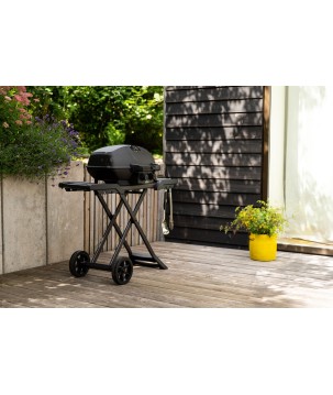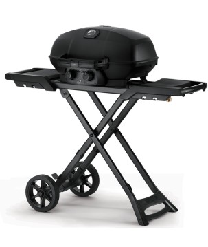 En la barbacoa portátil de gas Napoleon TravelQ PRO285X de gas con carro de tijera plegable puede cocinar hasta 19 hamburguesas a la vez en un área de cocción de 37 x 54 cm. El elegante acabado en negro mate se adaptará a cualquier decoración exterior. El diseño de la tapa superior alta de aluminio fundido le permite llevar la barbacoa portátil al nivel gourmet. Ase pollos o pavos enteros, carne de cerdo e incluso costillas; con esta pequeña barbacoa todo es posible. Al usar los quemadores dobles de acero inoxidable, tiene un control preciso de la temperatura, al igual que en las parrillas grandes de Napoleón. Incluso puede asar indirectamente alimentos más delicados encendiendo un quemador y asando en el otro lado de la parrilla. El sellado a fuego alto es instantáneo y sabrá que está usando un producto de Napoleon con las rejillas WAVE™ icónicas que le permitirán obtener esas marcas de sellado únicas. Al igual que su sartén de hierro fundido favorita, las rejillas de hierro fundido recubiertas de porcelana se calientan de manera uniforme y le brindan una superficie antiadherente para que pueda cocinar como en una sartén de hierro fundido. Esta barbacoa portátil es perfecta para cualquier aventura, cuenta con un el carrito liviano con ruedas todo terreno, es fácil de plegar y armar, y cuenta con almacenamiento compacto, y correas para el tanque de propano.