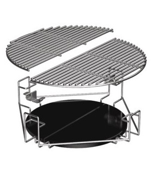 El Systema de cocción en 2 niveles es un sistema modular que transforma a tu Bastard en un todoterreno. Divide las cestas de carbón en dos zonas llenando un lado con carbón, coloca el deflector de calor de media luna y la parrilla de cocción encima para crear una zona directa e indirecta. En combinación con nuestros accesorios de media luna, las posibilidades son infinitas.