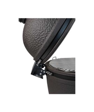 La parrilla de The Bastard Large Solo está hecha de acero inoxidable extra grueso (7 mm). La parte superior de hierro fundido de precisión permite un control preciso y fácil de la temperatura dentro del kamado. El sistema de bisagras hace que Bastard sea muy fácil de abrir y cerrar.