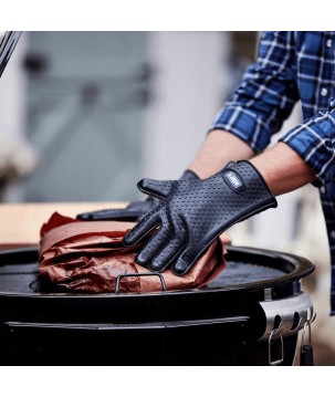Estos guantes de silicona para barbacoa son perfectos para manipular alimentos en una barbacoa o ahumador. La resistente silicona te permite trasladar fácilmente grandes piezas de carne desde superficies calientes. Los guantes se pueden lavar a mano con agua y jabón para que estén listos en cuanto quieras volver a usar tu barbacoa.