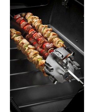 • Las brochetas, de 40,64 cm de longitud, giran lentamente para asegurar la uniformidad de la cocción