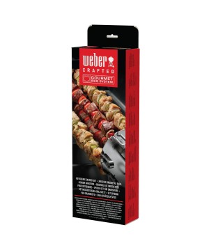 Saca tu cocina al aire libre y prepara platos que nunca creíste posibles en tu barbacoa con este accesorio Weber. Con solo insertar el juego de brochetas para asador giratorio Weber en el espetón del asador giratorio instalado en tu barbacoa, podrás preparar sabrosas combinaciones uniformemente cocinadas para tus kebabs a base de pollo, langostinos, verduras, fruta y mucho más. Este accesorio requiere un asador giratorio de barbacoa.