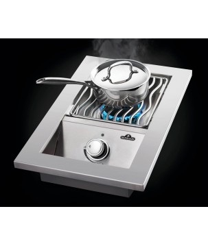 Elabore guarniciones y salsas mientras la parrilla principal está en uso con este quemador de fogón en línea integrado de propano de 25,4 cm.