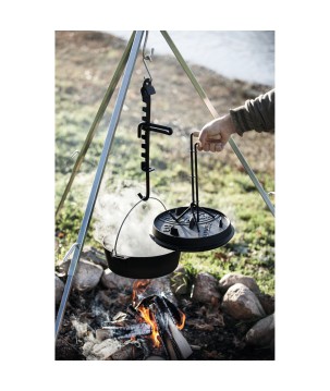 Gracias a sus pies adicionales, el levantador de tapa profesional está siempre disponible al lado del horno o barbacoa holandesa. Además, los pies sirven como una herramienta adicional, ya que te permite controlar siempre la tapa caliente al levantarla.