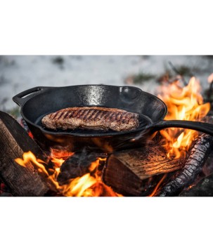 Puedes usar la sartén al aire libre sobre el fuego, en la parrilla, así como en interiores en cualquier tipo de cocina o en el horno. Tiene un mango de sartén y un mango pequeño en el sitio opuesto para que sea fácil de manejar y permite colgarla.