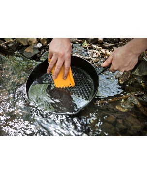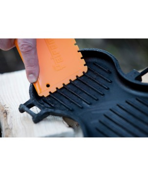 La estructura del diente del raspador se ajusta perfectamente a todos los productos PETROMAX de hierro fundido. Esto te permite limpiar fácilmente cualquier superficie de parrilla con surcos, lo que te ahorra tiempo para limpiar y mantener tus productos. El raspador es resistente al calor de hasta 120° C y, por lo tanto, te permite limpiar productos de hierro fundido que todavía están calientes o empapados en agua caliente. El raspador está hecho de plástico seguro para alimentos.: