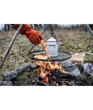Los guantes Aramid Pro 300 resistentes están en una sola talla y, por lo tanto, son perfectas para cada mano. También mantienen los antebrazos a salvo de chispas y llamas voladoras gracias a las mangas largas. Los guantes cuentan con el clásico diseño de Petromax, del cual el logotipo del dragón simboliza la fascinación por el fuego, la calidez y la luz.