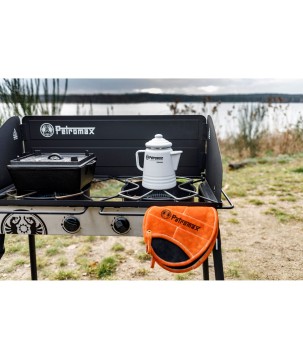 Los agarradores de olla Aramid Pro 300 con bolsillo de Petromax ofrecen protección práctica a un calor de contacto de hasta 250°C. Gracias a la espaciosa apertura, puedes colocar las manos dentro fácilmente y, por lo tanto, protegerte de manera segura de las quemaduras durante tus aventuras de cocina.