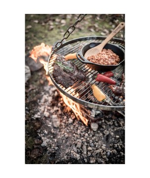 La Fire Skillet se puede utilizar en el horno, sobre su cocina de gas, en cocinas eléctricas. También funciona muy bien al aire libre en una fogata o en una barbacoa adecuada. En la Fire Skillet cada comida es una delicia.