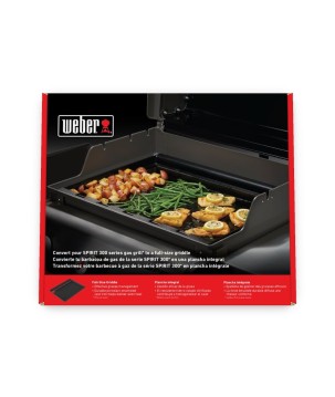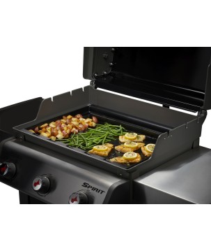 Avec la plancha à griller pleine grandeur en fonte émaillée de porcelaine, le gril de votre BBQ Spirit 300 Series peut être converti en un gril plat complet. La plaque spécifique de gestion de l'évacuation des graisses remplace l'ensemble de la grille.