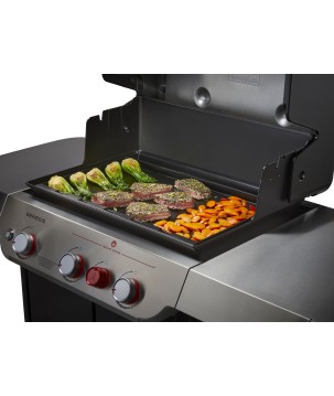 Avec la plancha à griller pleine grandeur en fonte émaillée de porcelaine, le gril de votre BBQ Genesis 300 Series peut être converti en un gril plat complet. La plaque spécifique de gestion de l'évacuation des graisses remplace l'ensemble de la grille.