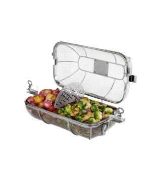 Grâce au WEBER CRAFTED Gourmet BBQ System, déplacez votre cuisine à l'extérieur et réalisez des plats que vous ne pensiez pas pouvoir faire avec votre barbecue. Il vous suffit de fixer le panier pour rôtissoire WEBER CRAFTED sur la broche de votre barbecue pour faire de délicieuses frites croustillantes, des légumes ou même du popcorn. Rôtissoire pour barbecue requise pour l’utilisation.