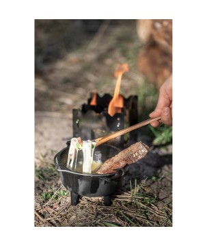 Grâce aux incroyables caractéristiques de la fonte et à la structure de surface spéciale, la chaleur est stockée et distribuée efficacement. La surface prétraitée rend inutile un assaisonnement initial et le four robuste peut être utilisé immédiatement. À l'extérieur, il est utilisé dans un feu de camp ou avec du charbon de bois et des briquettes. Le bord surélevé du couvercle vous permet également de placer des charbons ou des braises dans le four hollandais. Le four hollandais devient chaud de tous les côtés et convient, par exemple, à la cuisson du pain.