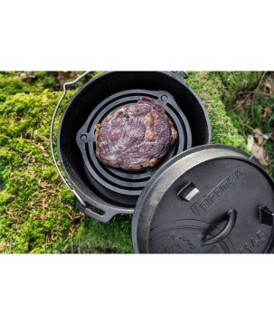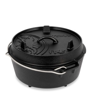 Grâce aux incroyables caractéristiques de la fonte et à la structure de surface spéciale, la chaleur est stockée et distribuée efficacement. La surface prétraitée (finition assaisonnée) rend inutile un assaisonnement initial et le four robuste peut être utilisé immédiatement. À l'extérieur, il est utilisé dans un feu de camp ou avec du charbon de bois et des briquettes. Le bord surélevé du couvercle vous permet également de placer des charbons ou des braises dans le four hollandais. Le four hollandais devient chaud de tous les côtés et convient, par exemple, à la cuisson du pain.