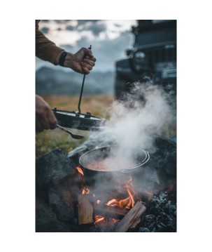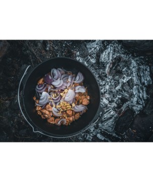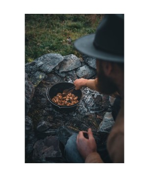 Grâce aux incroyables caractéristiques de la fonte et à la structure de surface spéciale, la chaleur est stockée et distribuée efficacement. La surface prétraitée (finition assaisonnée) rend inutile un assaisonnement initial et le four robuste peut être utilisé immédiatement. À l'extérieur, il est utilisé dans un feu de camp ou avec du charbon de bois et des briquettes. Le bord surélevé du couvercle vous permet également de placer des charbons ou des braises dans le four hollandais. Le four hollandais devient chaud de tous les côtés et convient, par exemple, à la cuisson du pain.