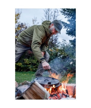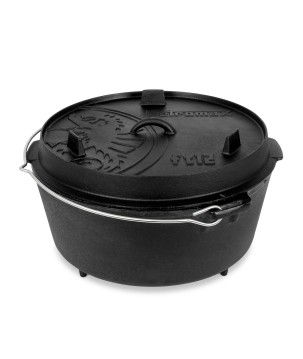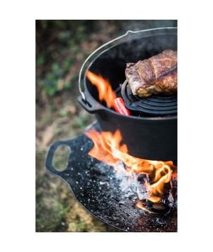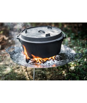 Grâce aux incroyables caractéristiques de la fonte et à la structure de surface spéciale, la chaleur est stockée et distribuée efficacement. La surface prétraitée (finition assaisonnée) rend inutile un assaisonnement initial et le four robuste peut être utilisé immédiatement. À l'extérieur, il est utilisé dans un feu de camp ou avec du charbon de bois et des briquettes. Le bord surélevé du couvercle vous permet également de placer des charbons ou des braises dans le four hollandais. Le four hollandais devient chaud de tous les côtés et convient, par exemple, à la cuisson du pain.