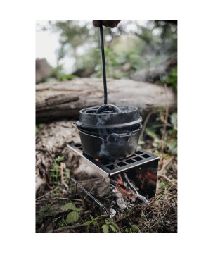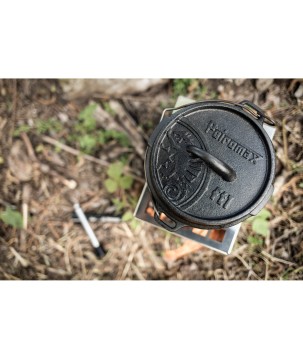 Grâce aux incroyables caractéristiques de la fonte et à la structure de surface spéciale, la chaleur est stockée et distribuée efficacement. La surface prétraitée (finition assaisonnée) rend inutile un assaisonnement initial et le four robuste peut être utilisé immédiatement. À l'extérieur, il est utilisé dans un feu de camp ou avec du charbon de bois et des briquettes. Le bord surélevé du couvercle vous permet également de placer des charbons ou des braises dans le four hollandais. Le four hollandais devient chaud de tous les côtés et convient, par exemple, à la cuisson du pain.