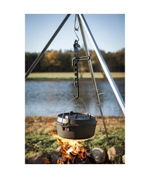 Grâce aux incroyables caractéristiques de la fonte et à la structure de surface spéciale, la chaleur est stockée et distribuée efficacement. La surface prétraitée (finition assaisonnée) rend inutile un assaisonnement initial et le four robuste peut être utilisé immédiatement. À l'extérieur, il est utilisé dans un feu de camp ou avec du charbon de bois et des briquettes. Le bord surélevé du couvercle vous permet également de placer des charbons ou des braises dans le four hollandais. Le four hollandais devient chaud de tous les côtés et convient, par exemple, à la cuisson du pain.