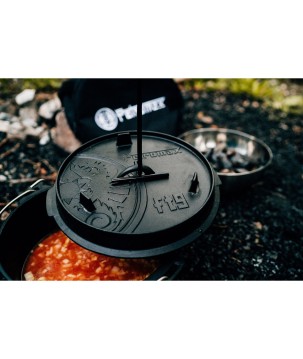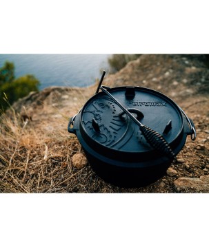 Grâce aux incroyables caractéristiques de la fonte et à la structure de surface spéciale, la chaleur est stockée et distribuée efficacement. La surface prétraitée (finition assaisonnée) rend inutile un assaisonnement initial et le four robuste peut être utilisé immédiatement. À l'extérieur, il est utilisé dans un feu de camp ou avec du charbon de bois et des briquettes. Le bord surélevé du couvercle vous permet également de placer des charbons ou des braises dans le four hollandais. Le four hollandais devient chaud de tous les côtés et convient, par exemple, à la cuisson du pain.