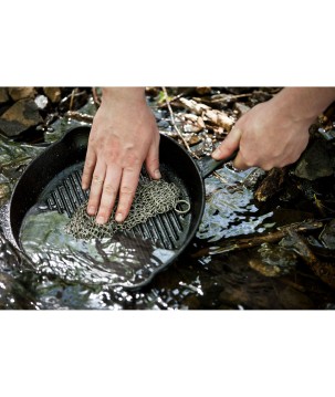 Grâce à la version XL de notre récureur Petromax, le nettoyage sera désormais encore plus rapide : grâce à la grande surface de contact des anneaux inox emboîtables, ce spécialiste nettoie efficacement votre fonte et votre fer forgé sans abîmer la précieuse patine.
