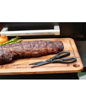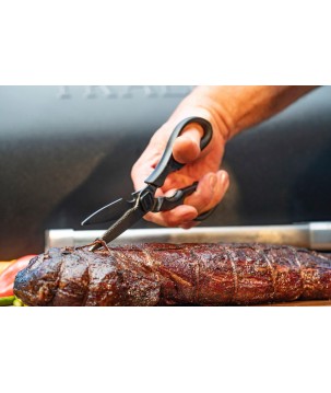 Arrêtez d'utiliser des ciseaux fragiles et donnez à la viande le respect qu'elle mérite avec les cisailles à barbecue Traeger. Les lames recouvertes de titane coupent sans effort la peau et les os et se séparent pour un nettoyage facile. De plus, il a un ouvre-bouteille intégré.