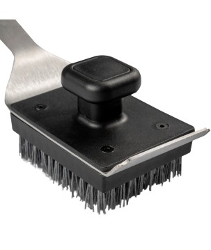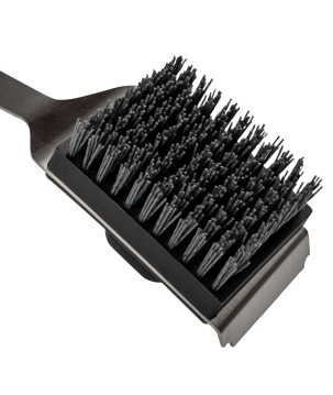 Brosse à poils en nylon durable conçue pour nettoyer les grilles de barbecue froides.