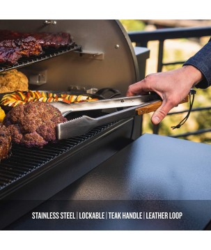 Les pinces à barbecue Traeger en acier inoxydable durable ont une pointe dentelée pour une adhérence maximale lorsque vous retournez, tournez ou déplacez des aliments.