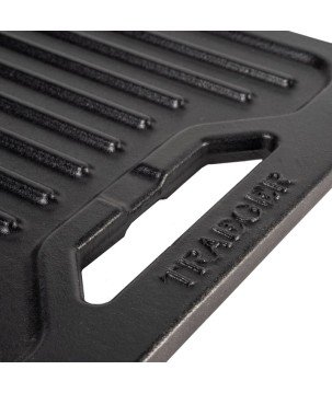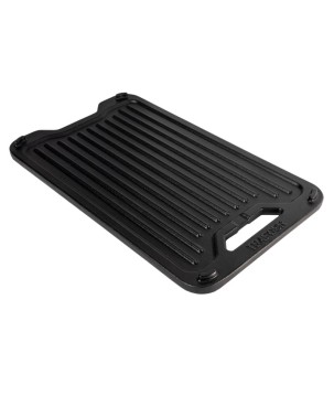 Développez encore plus les capacités de votre barbecue Traeger avec la plancha réversible en fonte ModiFIRE® pour Timberline. Conçue pour s'emboîter solidement dans la grille de grill de tous les barbecues Traeger compatibles ModiFIRE, cette plancha réversible présente une face lisse idéale pour la friture d'œufs et de bacon par exemple, et une face rugueuse pour les marques de grillades et une étanchéité parfaite. Un canal dans la plaque chauffante permet à la graisse de tomber directement dans le seau à graisse et à cendres en aluminium EZ-Clean™ du barbecue pour plus de commodité. La plaque chauffante est fabriquée en fonte pour une excellente rétention de la chaleur et dispose d'un revêtement en émail pour qu'elle soit prête à cuisiner dès la sortie de la boîte.