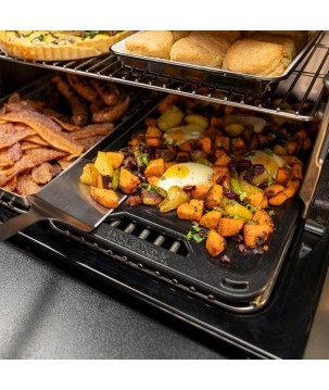 La plancha de cuisson réversible en fonte ModiFIRE Timberline Traeger vous permet de changer rapidement la surface de cuisson de votre barbecue sans avoir à retirer la grille. Les accessoires ModiFIRE sont conçus pour s'adapter en toute sécurité aux barbecues compatibles ModiFIRE et peuvent être ajoutés ou retirés en quelques secondes.