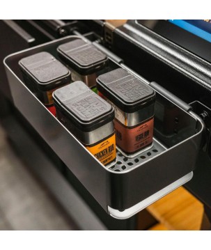 Arrêtez de faire des allers-retours entre le barbecue et la cuisine à la recherche des essentiels de la cuisine de tous les jours. Le Traeger P.A.L. Traeger Pop-And-Lock® garde tous vos condiments, sauces et tout ce que vous voulez à portée de main à tout moment. Placez-le simplement n'importe où sur votre P.A.L. rail et vous serez toujours armé des ingrédients que vous utilisez le plus.