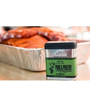 Des côtelettes de porc au poulet à la broche, rehaussez la saveur de toutes vos viandes blanches avec l’enrobage Traeger pour porc et volaille.