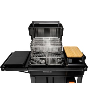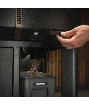 Des granulés de bois dur entièrement naturels sont transportés de la trémie à la chambre de combustion par une vis sans fin. Les granulés de bois dur sont ensuite embrasés par la résistance pour alimenter les flammes et ajouter une délicieuse saveur de bois-fumé à vos aliments. Un ventilateur fait circuler la chaleur et la fumée pour une cuisson uniforme et constante, et un bac de récupérateur de graisses empêche les flammes d'atteindre vos aliments et prévient les flambées. Le tout est commandé par un contrôleur qui maintient une température précise afin que vous puissiez passer plus de temps avec vos proches et moins de temps à surveiller votre barbecue.