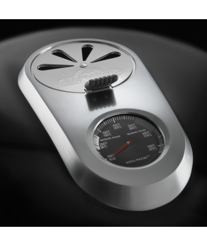 This Napoleon PRO 57 cm charcoal barbecue is compact and space-saving but can grill up to 23 burgers at the same time. This grill can easily follow you to wherever the action is thanks to the sturdy all-weather wheels. You'll know it's a Napoleon with the iconic WAVE™ cooking grids for those distinctive sear marks. Easy access, hinged, porcelain coated cast iron cooking grids make adding more charcoal or woodchips effortless, while three cooking heights and masterful airflow management provide precise temperature control. The improved PRO Air Control system increases air and temperature accuracy. A large stainless steel heat diffuser lifts the charcoal up off the bowl of the kettle evenly radiating heat throughout the grill and directing spent charcoal down to the ash catcher. On the outside, this grill shines. The porcelain coated steel body shrugs off the elements. The lid features an offset hinge that opens, allowing access to the whole cooking surface while keeping your hands away from the heat.