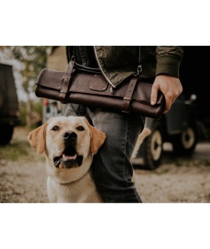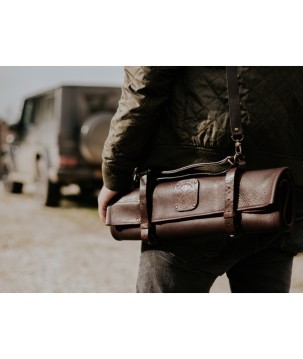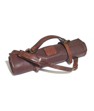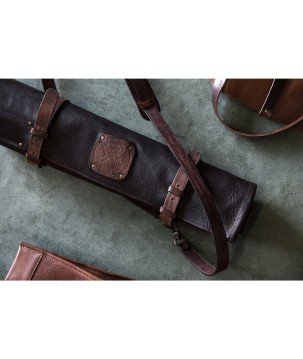 Just fill the knife roll with your knives and roll up. Close the knife roll with the two buckles, that are attached to the body. Once rolled up and closed the knife roll can be worn crossbody or by hand. The long shoulderstrap can also be detached from the handheld. Along with the knife roll you’ll receive 5 knife sleeves in different sizes. These prevent your knives from sliding through the leather and, even more important, they protect the knives.