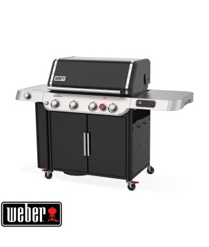 Weber Genesis EX-435 Black Barbecue a superior performance barbecue with four burners, Sear station for additional heat and side burner. Attractive design and premium finishes. Large side shelves, closed cabinet and Side compartment to store barbecue accessories.