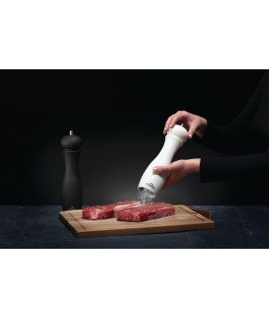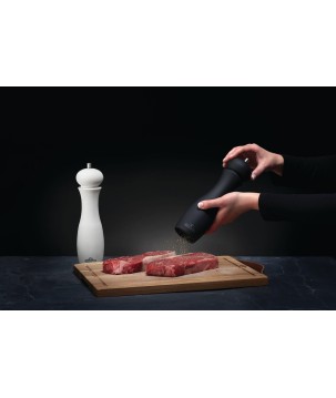 Add the perfect touch of spice to your next grilled meal with the Salt and Pepper Grinder Set from Napoleon. Large and luxurious salt and pepper grinders feature a matte, soft-grip surface that is stylish enough for the table and easy to clean when cooking gets messy. The high-quality ceramic mechanisms are built to last for years. Use the top adjustments to produce coarse or fine seasoning.