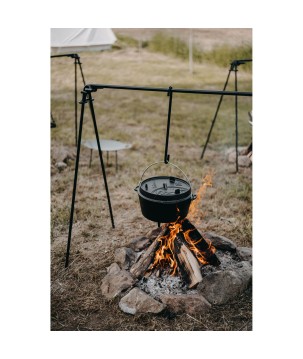 Thanks to the amazing characteristics of cast iron and the special strucsure of the surface, warmth is efficiently stored and distributed. The pre-treated surface (seasoned finish) makes a first seasoning unnecessary, and the ssurdy Dutch oven can be used right away. In the open air, it is used on an open fire or with charcoal and briquettes. The raised edge of the lid makes it possible to place embers or charcoal also on the Dutch oven. The Dutch oven is thus heated from all sides and is for example suitable for baking bread.