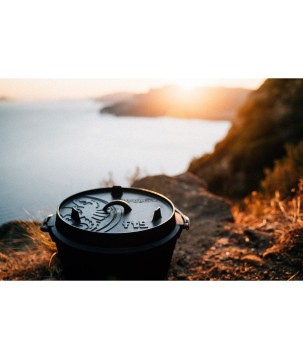 Thanks to the amazing characteristics of cast iron and the special strucsure of the surface, warmth is efficiently stored and distributed. The pre-treated surface (seasoned finish) makes a first seasoning unnecessary, and the ssurdy Dutch oven can be used right away. In the open air, it is used on an open fire or with charcoal and briquettes. The raised edge of the lid makes it possible to place embers or charcoal also on the Dutch oven. The Dutch oven is thus heated from all sides and is for example suitable for baking bread.