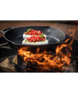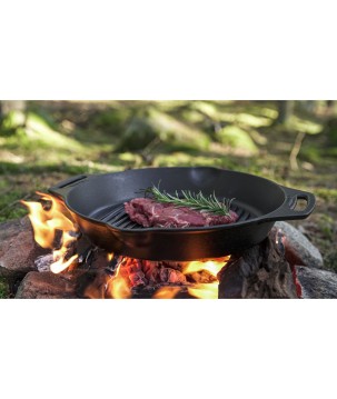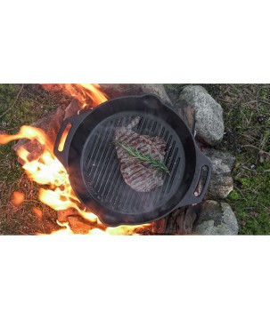 You can use your Grill Fire Skillet outdoors on the open fire, grill and Co. as well as indoors on any stove type and in the oven. The gp30h with two handles is easy to handle and especially well suited for the baking oven or kettle grill. The Grill Fire Skillets are available in two sizes and two versions - classic with long pan handle and small one or with two small handles.